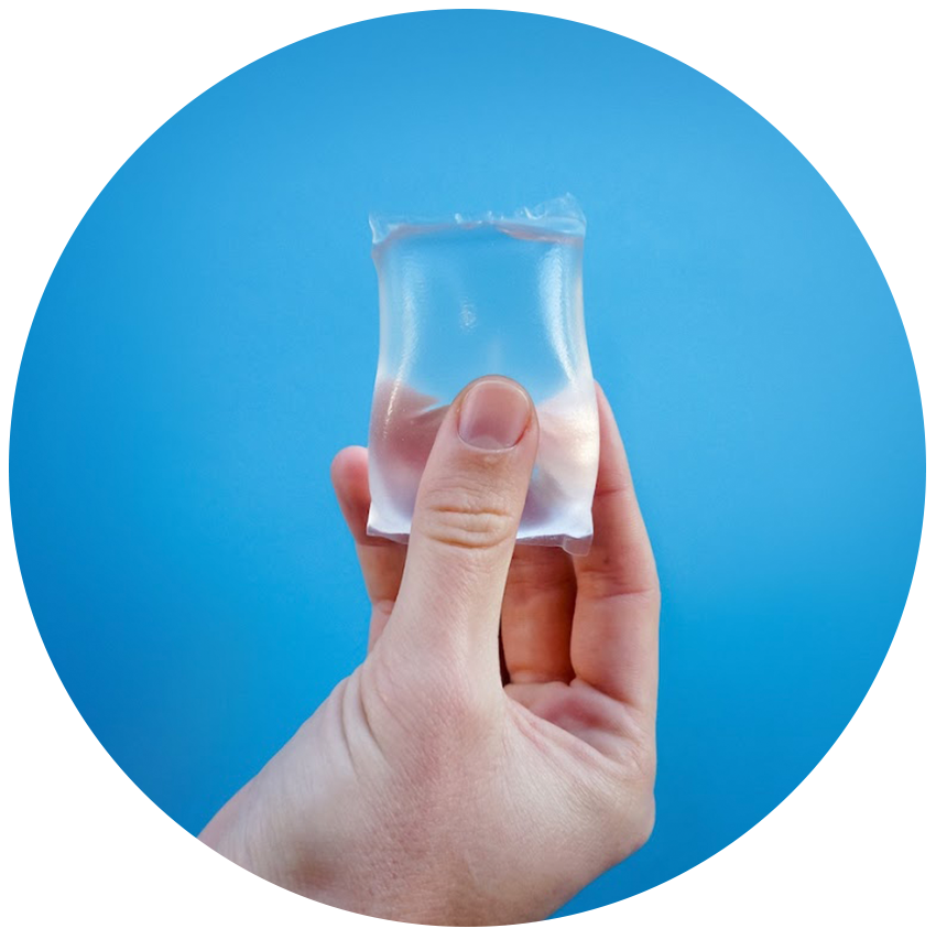 The condiment sachets are available on the Just Eat food delivery platform. During the initial trial with ten restaurants, the use of 46,000 sauce sachets made from single-use plastic were avoided. The water capsules were trialled at the 2019 London marathon, eliminating the need for more than 30,000 single-use plastic cups and bottles.